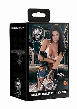 Five rows of little skulls, with o-rings in between, complete this “dangerous" looking arm/wrist band! Lace it up with the included cord and you are good to go! Made of high-quality black Bonded Leather and dark grey metal, this is a seriously well-made body enhancer!