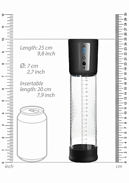 The rechargeable version of this high-quality penis pump measures a 250mm (9,85inch) and has a sizeable girth of 70mm (2,76inch). Made from medical grade silicone and ABS, this sturdy pump will always deliver excellent results! The included silicone sleeve and ABS tube are easy to clean. Just press the button, sit back and let the pump take care of the rest! For quick and instant release there is a safety valve button, so there will be no surprises! The initial charge of the battery will take about 6 hours which will account for around 300 sessions with this fantastic pump! WARNING: Please read product manual before using any type of vacuum pump or constriction ring. Stop using the devices immediately if you experience any pain or discomfort.