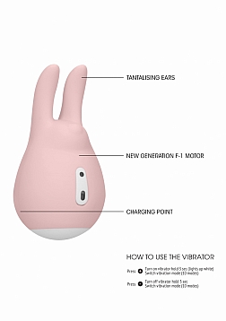 The earth-shatteringly orgasmic ears of this mini rabbit clitoral massager are dainty yet dynamic, making this clitoral toy ideal for solo or intense couples play. It fits right in the palm of your hand and the 2 equally shaped rounded tips vibrate through its 2 majestic vibration points at a staggering 7,500 RPM. It features 10 unique vibration functions, is waterproof, extremely quiet at only 60dB and contains a rechargeable battery that can be fully recharged with its USB cable in just 120 minutes and will provide a full 100 minutes of passionate play time! It is made from 100% super soft medical grade silicone and contains a beautifully integrated phthalate free ABS thermoplastic bottom and power button.