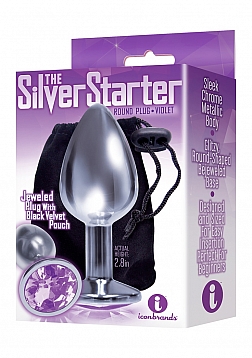 Let's get the party started with Silver Starters, only from Icon. This elegant jeweled butt plug pairs a classic silver metal design with a wide, glimmering gem base. These beautiful, handmade gems are available in no less than nine stunning colors with a wide variety of shapes and finishes, including this beautiful violet diamond. Pamper your pucker like a princess with rubies, sapphires, topaz and more, all in a perfectly sizes and tapered plug perfect for beginners. Ideal with any lubricant and ultra-hygienic, due to the silver totally non-porous surface. And so easy to clean with just soap and warm water. So slip on that tiara or a pair of glass slippers, get your ass lubed up, and pick out the perfect jewel butt plug to give you a night right out of a fairy tale!