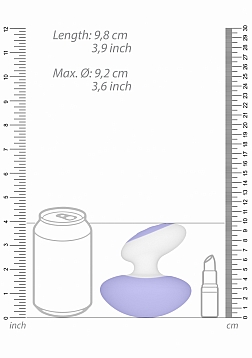 | Dimensions package | 16 x 13,50 x 7 cm |  | Weight package | 220 gram |  | Product dimensions | 9,8 x 9,2 x 9,2 cm |  | Product weight | 149 gram |  | Product diameter | 9,2 cm |  | Rotations per minute | 5800 RPM |  | Speed modes | 10 |  | Noise level | 55 dB |  | Rechargeable | Yes |  | Rechargeable time | 120 min |  | Recharged battery lifetime | 90 min |  | Waterproof | Yes |  | Splashproof | Yes |  | Phthalate free | Yes |  | Materials | Silicone, abs |