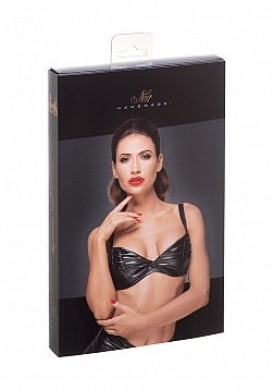 This sassy powerwetlook bra's cups are formed of handmade decorative pleats. Comfortable straps are length-adjustable. Bra is fastened with classic hooks on the back.