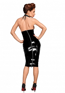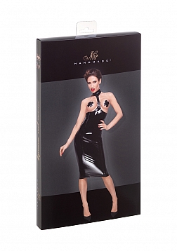 Naughty PVC dress exposes breasts in the most daring way. There is long 2-way zipper on the back. Made of eco leather choker is removable, length- adjusted with a buckle and laced up on the back. All fabrics are party approved!