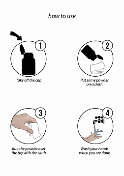 Ideal for taking care of and maintaining all your TPE realistic feel toys. By using this powder you will extend the lifespan of all your precious toys! It restores the original structure together with the resilience of the toys and prevents dehydration. Instructions for use: sprinkle a little powder on your toy and rub down. Do not forget any inside areas if applicable.