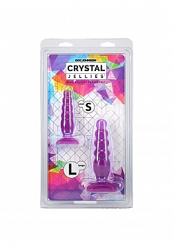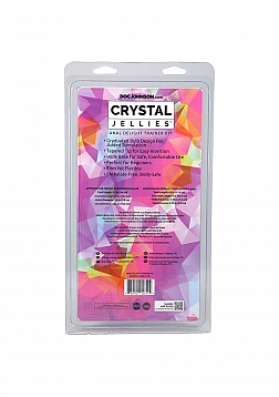 Explore your backdoor with confidence! With a  and medium plug, the Crystal Jellies Anal Trainer Kit is the perfect fit for anal play beginners. The small plug features 4” of insertable length, and the large plug features 6” of insertable length. These plugs feature a wide flared base for safe and comfortable anal play. Crystal Jellies are made from phthalate-free body safe material. Proudly Made in America.