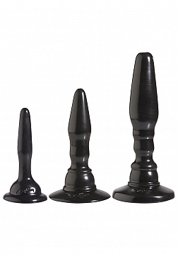 Start small, finish strong. A great 3 piece plug set, Wendy Williams Anal Trainer Kit was specifically designed to allow you to work your way up the spectrum of backdoor pleasure. Each plug is uniquely shaped to deliver distinct sensations; the smallest is a 4.5 inch smooth and straight plug, making it the perfect starting point, the medium is 5 inches for a perfect midpoint, mimicking the large on a smaller scale and packing a single bump, and the large 6 inches for more substantial play featuring 2 exciting bumps texturing the lengthy neck.. All three are flexible for the best possible positioning, but firm enough to penetrate easily. A very distinct base on each allows you to play safely.