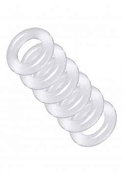 Discover new levels of pleasure with this customizable ball-stretching kit! Perfect for both beginners and those who want to push their limits, this set of six stretchy rings allows you to add tension one ring at a time. Find the perfect tugging sensation as your scrotum is pulled downward more and more with each ring you add. For even more excitement, use one as a cock ring to keep your member hard and pulsing with sensitivity while your balls are stretched.