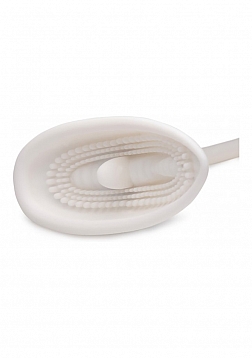 Suction your sensitive vulva into texture and vibration! Place the silicone cup against your labia and clitoris and use the automatic pump to turn on the vacuum and vibration. Soft tendrils will massage your most delicate parts while a small tongue laps up your sweetness. The pressure will also draw more blood to the area, making you more sensitive. The on-off button is easy to use, while a vacuum release button with quickly free you from the euphoria within the cup. The premium silicone material is non-porous and phthalate-free, but not compatible with silicone lubricants. Clean with mild soap and warm water.