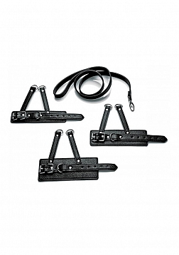 This 4 piece set includes 3 adjustable scrotum harnesses, made of an easy to clean and durable PU leather material. The leash has a simple snap hook closure with wrist loop and plenty of length to control or lead your subject. You can even attach weights, ropes, or other accessories as you desire. The metal is nickel-free to prevent irritation and the material wipes clean easily.