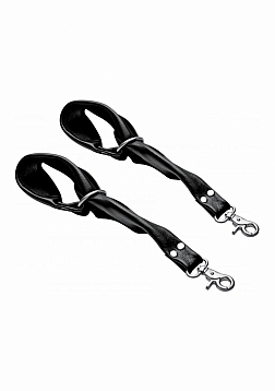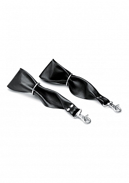 These easy to use and durable leather restraints use the weight of their own body to cinch tight, restricting movement and leaving them helpless. Use on wrists or ankles- the more they pull, the tighter these get. The silver metal is nickel-free, and the supple yet strong leather has a premium look and feel. The ends have a durable trigger snap hooks that open and close easily yet hold tight during rough play.