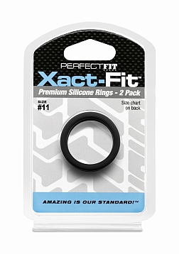 Each 2-Pack contains 2 size #11 Xact-Fit™ rings. The incredibly popular PlayZone has proven our revolutionary Xact-Fit™ 0.1" incremental cock ring sizing system is the most precise on the market. Super strong, but soft to the touch, Xact-Fit™ rings stretch just enough to get on and off, but otherwise should provide a very comfortable (no pulled pubes!) and effective fit.
