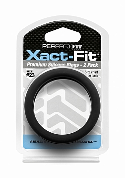 Each 2-Pack contains 2 size #23 Xact-Fit™ rings. The incredibly popular PlayZone has proven our revolutionary Xact-Fit™ 2.5mm (0.1") incremental cock ring sizing system is the most precise on the market. Super strong, but soft to the touch, Xact-Fit™ rings stretch just enough to get on and off, but otherwise should provide a very comfortable (no pulled pubes!) and effective fit. The sizing # references the ID in inches (#10 = 1.0" ID, #11=1.1" ID etc)