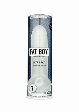 We are thrilled to introduce the new Fat Boy™ Ultra Fat Sheath–formerly known as our super popular FatBoy™and Fat BoySport™–but back in sharp all new vertical storage packaging. Adds an impressive 1" girthto yourpenis!Made of super soft and stretchy SilaSkin™, it is designed and proven to give both partners intense, eye-rolling pleasure.The Fat Boy™ is extremely comfortable, surprisingly easy to get on and off and stays in place thanks to itsclosed tip and a thick loop that wraps around the base of the scrotum, which gives a pleasurable tug to aman's balls during penetration or stroking.Available in 5.5" and 7" length sizes. Adds 1" girth.