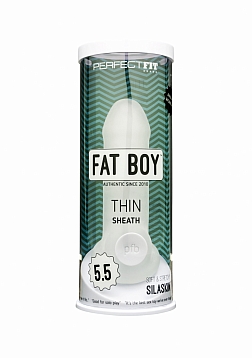We are thrilled to re-introduce the new Fat Boy™ Thin Sheath now in sharp all new vertical storagepackaging.Adds noticeable girth to yourpeniswithout being too much for your partner to handle.Made of super soft and stretchy SilaSkin™, it is designed and proven to give both partners intense, eye-rolling pleasure.The Fat Boy™ is extremely comfortable, surprisingly easy to get on and off and stays in place thanks to itsclosed tip and a thick loop that wraps around the base of the scrotum, which gives a pleasurable tug to aman's balls during penetration or stroking.Available in 5.5" and 6.5" length sizes. Adds 0.5" girth.