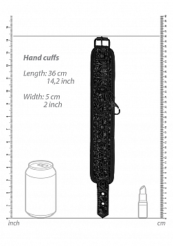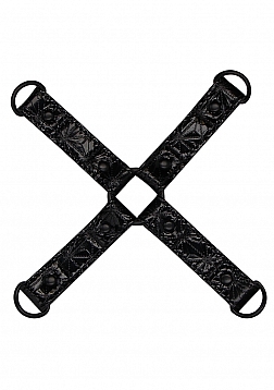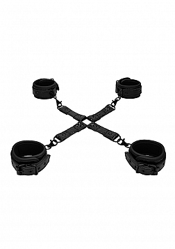 “Getting on all fours” will have an exciting new meaning in your sex life! The OUCH! hogtie fulfills all your kinky dreams, and more! In any BDSM collection, a hogtie plays an important role and with this high-quality equipment you can have a go at it yourself. With their fashionable diamond pattern, these neoprene and faux-leather cuffs and cross really stand out from the crowd! The hogtie consists of 2 ankle cuffs, 2 handcuffs, and a “cross” with four O-rings. The ankle cuffs are 39 cm (15.4”) long and 5.5 cm (2.2”) wide with 7 holes for size adjustment. The handcuffs are 36 cm (14.2”) long and 5 cm (1.97”) with 6 holes for size adjustment. The hogtie “cross” has 4 lengths of 27.2 cm (10.7”) each.