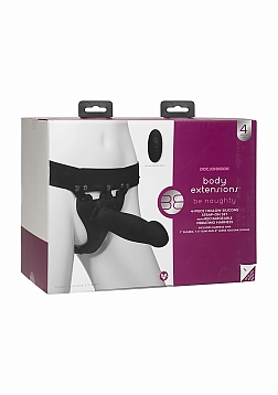 This high-quality 4-piece set includes an adjustable elastic and silicone harness with a built-in 10-function vibrator and three premium silicone attachments crafted to maximize the sexual pleasure and empowerment of every user. Controlled via wireless remote or surface buttons, Body Extensions vibrating harnesses are fully rechargeable with the included USB cable. Each product in the Body Extensions collection includes detailed instructions for care and usage.
