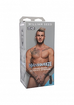 The French-Canadian jackhammering star of Men.com joins the Man Squeeze lineup with a variable pressure hard-case stroker molded directly from his body. Handcrafted in lifelike ULTRASKYN, William's Man Squeeze features a tight, textured interior that warms to the touch and feels just like the real thing. Play your favorite William Seed scene and become his costar!