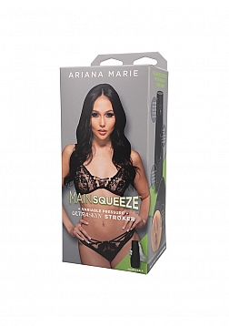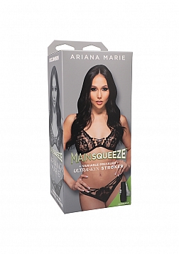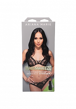 This dark-eyed beauty with good-girl looks and dirty desires joins the Main Squeeze lineup with a variable pressure hard-case stroker molded directly from her body. Handcrafted in lifelike ULTRASKYN, Ariana's Main Squeeze features a tight, textured interior that warms to the touch and feels just like the real thing. Play your favorite Ariana Marie scene and become her costar!