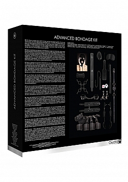 For those couples who want to step up their bondage games, this kit will satisfy even the most advanced bondage lovers. Comes with breathable ball gag, bonded leather hand and leg cuffs, satin eye mask, flogger, 11 inch feath - er tickler, 10 meter japanese silk rope, hogtie connector, nipple clamps, bond - ed leather collar and leash, 12 inch paddle, subversion mask, sex dice, door swing, and the ultimate bed restraint system!