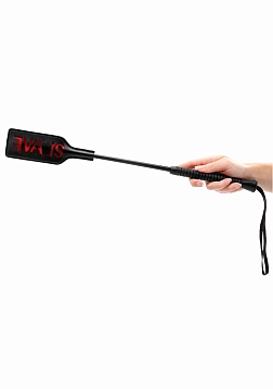 Leave a lasting impression on your partner. This short handled rectangular shaped crop is the perfect way to discipline your partner. Leave a lasting impression on your sub. The word SLAVE is reversed so it will show up on their skin.