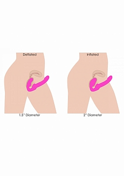 Perfect for penetrating a male or female body, this remote-controlled strapless strap-on features extreme vibration and an inflatable vaginal bulb to create the perfect fit for your body. The shape allows one partner to insert the smaller end vaginally, holding it with their kegel muscles or adding a harness for extra support. However, this unique model of strapless strap-on also has an inflating bulb to lock in place, as well as apply greater pressure inside. A pad with ridges provides clitoral bliss as they grind against it. Meanwhile, every thrust will send the long, smooth shaft into their partner. The curved end targets the G-spot or P-spot for direct stimulation. For greater convenience, a wireless remote control allows you to operate the inflation function and the powerful dual motors. Explore 3 speeds of buzzing and 7 patterns of pulsation for each partner. It is even waterproof for wet, hot fun in the bath, shower, or pool. Made of premium silicone, the Urge is non-porous, phthalate-free, and thoroughly sanitizes with mild soap and warm water. Preserve the material by avoiding use with silicone lubricant.