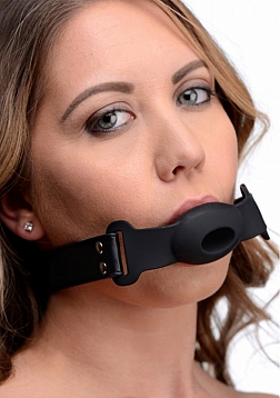 Shut up your submissives bratty back-talk with this unique hollow gag! The breathable design and comfortable shape reduces anxiety and prolongs playtime. An adjustable strap buckles to the perfect fit at the nape of the neck. Made of premium silicone, this gag is durable and body safe. The non-porous and phthalate-free material sanitizes easily with mild soap or toy cleaner.