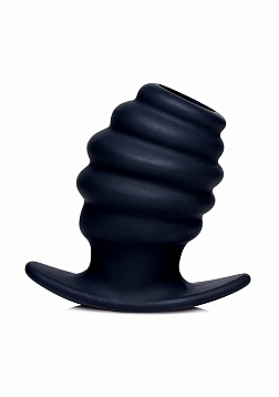 Ribbed for your anal pleasure, this hollow butt plug is available in 3 sizes so that you get the fit that is just right! The design features bold ridges that are curved for comfort while they massage your hole. Meanwhile, the tunnel in the core allows you to insert an anal-safe vibrator, a liquid of your choosing, and more! You can even give your partner a peek inside. Curved to hit the spot, this plug is great for the prostate, but will feel delightful in a female body as well. The ergonomic base allows it to sit comfortably between your cheeks for hours of wear. This unique plug is made of quality silicone, which makes it body-safe. The non-porous and phthalate-free material is not compatible with silicone lubricants, but is easy to sanitize with mild soap or toy cleaner.