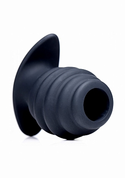 Ribbed for your anal pleasure, this hollow butt plug is available in 3 sizes so that you get the fit that is just right! The design features bold ridges that are curved for comfort while they massage your hole. Meanwhile, the tunnel in the core allows you to insert an anal-safe vibrator, a liquid of your choosing, and more! You can even give your partner a peek inside. Curved to hit the spot, this plug is great for the prostate, but will feel delightful in a female body as well. The ergonomic base allows it to sit comfortably between your cheeks for hours of wear. This unique plug is made of quality silicone, which makes it body-safe. The non-porous and phthalate-free material is not compatible with silicone lubricants, but is easy to sanitize with mild soap or toy cleaner.