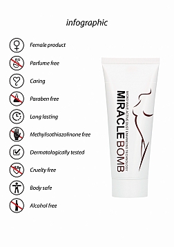 Miracle Bomb Gel supports firmer and fuller breasts thanks to e.g Fucus Vesiculous extract combined with natural oil, -extracts and Vitamine B3 for the optimal nourishment of your skin.