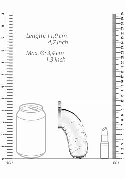 Dimensions package | 15,50 x 15,50 x 7,50 cm | Weight package | 368 gram | Product dimensions | 13 x 5 x 6 cm | Product weight | 136 gram | Product diameter | 4,2 cm | Inner diameter | 3,5 cm | Insertable length | 10 cm | Waterproof | Yes | Splashproof | Yes | Specifications | Inner Diameter Cage: 3,5 Rings: 4,5, 5, 5,5, 6 cm | Materials | Polycarbonate |