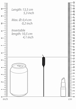 OUCH! Introduces a new line of toys for urethral explorers! If urethral sounding is your kink, then let these smooth probes deliver the ultimate pleasure! The urethra is lined with super-sensitive nerve endings, which can be extremely pleasurable when stimulated. Additionally, deep urethral play is the only way to directly massage the prostate. OUCH! Has a variety of urethral sounding probes for beginners as well as advanced users! This USB-RECHARGEABLE vibrating model comes with 20 different whisper quiet vibration modes, at less than 50dB, so there will always be the right setting for your ultimate pleasure! On a full 2 hour charge this superior toy will give you 1 hour of playtime. The rounded top allows easy and effortless insertion. Made from super-smooth medical grade, phthalate-free silicone, the toy has a total length of 13.5cm (5.3"), an insertable length of 10.5cm (4.41") and a diameter of 0.4 cm (0.16").