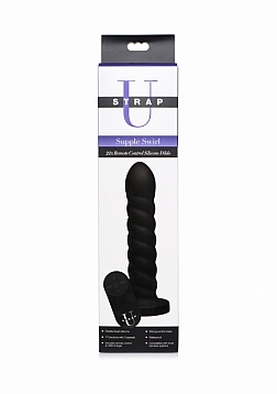 Savor the texture of swirling satisfaction! Perfectly designed to fit into standard harnesses for strap-on use, this luxurious dildo is made of liquid silicone to create a velvety-smooth finish with plenty of flexibility. Indulge in 3 speeds and 7 modes of powerful vibration, easily controlled by the wireless remote for more convenience and excitement. A spiral texture on the shaft provides an exquisite internal massage. The flared base works with most harnesses, and can suction onto hard surfaces for a hands-free ride. This rechargeable dildo is even waterproof for wet, hot fun in the bath or shower. Made of non-porous and phthalate-free silicone, the Supple Swirl is not compatible with silicone lubricants, but sanitizes easily with mild soap or toy cleaner.