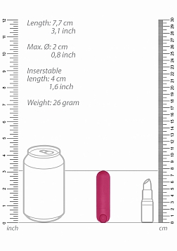 This mini vibrator will take you through a pleasure-filling journey with 3 simple clicks and its small size can reach all your desired target areas to provide you with intense vibrations while you sit back, relax and enjoy the magic. Made from smooth, impact-resistant, and phthalate-free ABS, this little pocket rocket speeds up to a staggering 10,000 RPM while offering you 10 vibration modes to choose from and producing a quiet noise level of just under 50dB. A full charge will take 60 minutes and will give 90 minutes of unlimited pleasure in return, all you have to do is hold 2-3 sec to switch on/off and click once to change the intensity and go through all the levels available. This Mini Bullet Vibrator has a total length of 7.7cm (3.1"), 2cm (0.8") in diameter and weighs 26 grams (0.92oz) with an insertable length of 4cm (1.6").