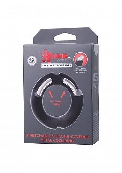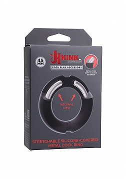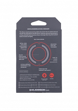 Looking for something stronger? This exclusive design combines the extreme feel of a stainless steel cock ring with the precision fit of durable silicone. Featuring an open-sided metal ring sheathed in a sturdy, stretchable band of premium silicone, this design strikes the perfect hard/soft balance of stretch and rigidity. A beveled edge intensifies the pressure in all the right places to complete the experience.