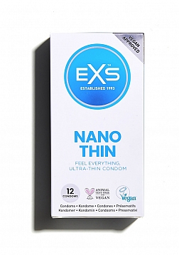 EXS Nano Thin are amongst the thinnest quality latex condoms in the world. They have a width of 53mm, no latex smell and feel like you are wearing no condom. Vigorously tested to the European standards and by the British Standards Institute (BSI) This product is extremely thin yet has the strength of thicker regular latex condoms.