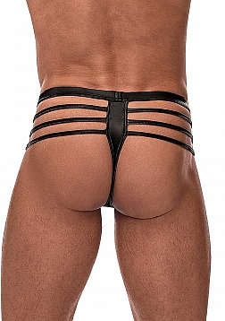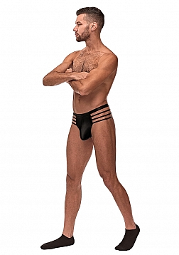 From the Cage Matte collection by Male Power, this style includes: A Cage thong featuring straps through the hips and rear attached to 1' thong back. The thong also features a supportive comfort pouch.