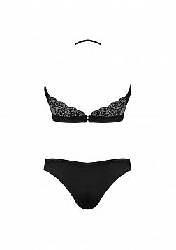 From the Exposed by Magic Silk collection, this style includes: A bandeau featuring halter ties that wrap around the neck and hook & eye closure in the back, and a matching panty featuring scalloped lace accents and a classic back.