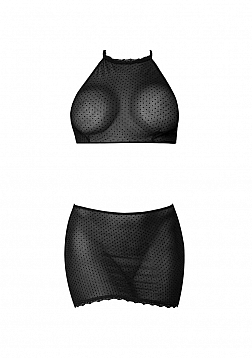 Polka Dot Mesh Halter and Skirt Set - XXL