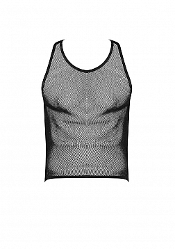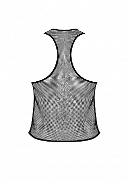 From the Stretch Net collection by Male Power, this style includes: A stretch fishnet tank featuring a racer cut back and soft, matching elastic trim.