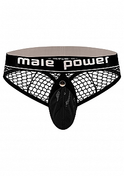 From the Cock Pit Net collection by Male Power, this style includes: A Cock Ring Thong featuring a detachable snap off pouch revealing a plush elastic C-ring, classic thong back, plush elastic trim and a satin finished branded waistband.
