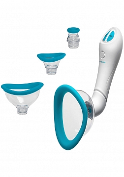 Let your flower bloom. This automatic suction cup and vibrator has 4 different-sized, interchangeable heads with soft, silicone rims made for stimulating the user's clitoris, vulva, and nipples. The cups are designed to follow the natural curve of a woman's body, and the handle is ergonomically designed for comfortable use. 7 vibration patterns and 7 suction functions allow for 49 unique sensations, which operate with just the touch of a button and can be enjoyed hands-free once the optimal seal is formed. Additional features including an instant air release button, power locking feature, and USB charging ensure that your pump play is always safe and worry-free. Full instructions for enjoyment and maintenance of your pussy pump are included.