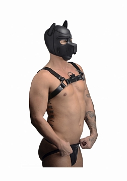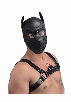 Transform into your K9 alter ego with the perfect puppy hood. Made of super soft and stretchy neoprene, this mask looks and feels premium. It conforms attractively around your head, leaving just your eyes, mouth, and nose exposed. The muzzle snaps on and off easily for two different ways to wear, featuring the same quilted pattern as the brow and inner ears. The bendable ears can be posed to simulate several different breeds. Whether you are a bad dog or a well-trained pet, this puppy play hood will help you accept your role at your owners feet.