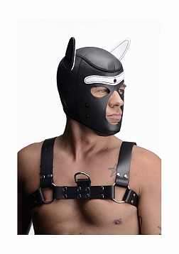 Transform into your K9 alter ego with the perfect puppy hood. Made of super soft and stretchy neoprene, this mask looks and feels premium. It conforms attractively around your head, leaving just your eyes, mouth, and nose exposed. The muzzle snaps on and off easily for two different ways to wear, featuring the same quilted pattern as the brow and inner ears. The bendable ears can be posed to simulate several different breeds. Whether you are a bad dog or a well-trained pet, this puppy play hood will help you accept your role at your owners feet.
