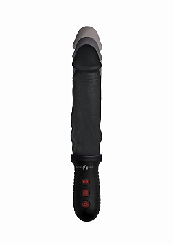 Get a handle on your pleasure with this vibrating and automatic thrusting dildo! The realistic design provides a genuine feel with its defined phallic head and lengthwise veins that snake up and down its black shaft. Enjoy the back and forth thrusting and powerful vibrations with a firm grip - perfect for those who like to play rough and need a more secure grip on their toys!