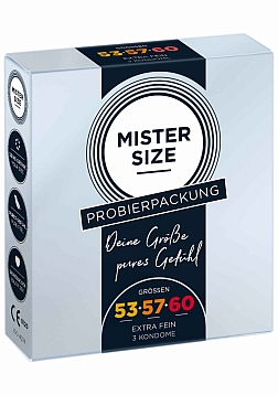 MISTER SIZE - pure feel 53mm, 57mm, 60,mm (3x3pieces testpack), for the curious who would like to try out new condom sizes