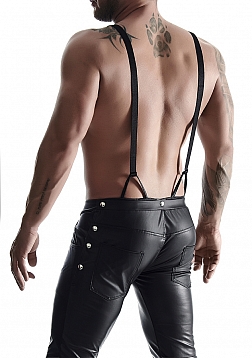 Wetlook men's 3/4 bavarian style pants with removable back. The pants has decorative metal elements.