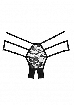 Strappy Euphoric crotchless panty, with front and back lace panels.