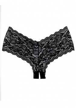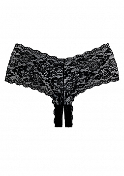 The classic lace booty short gone wilde with a crotchless twist, hugging the hips and sweetening the derriere.