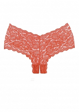 The classic lace booty short gone wilde with a crotchless twist, hugging the hips and sweetening the derriere.
