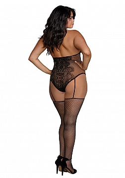 Fishnet and Lace Teddy Bodystocking - Plus Size